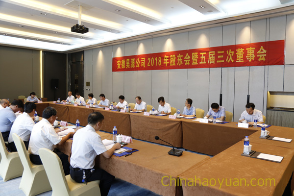 2018年6月22日,昊源公司2018年股東會(huì)暨五屆三次董事會(huì)在阜陽(yáng)勝利召開(kāi)。公司股東、董事出席會(huì)議,晉煤集團(tuán)總經(jīng)濟(jì)師楊曉峰作為晉煤集團(tuán)股東代表出席會(huì)議,公司監(jiān)事會(huì)成員列席會(huì)議。