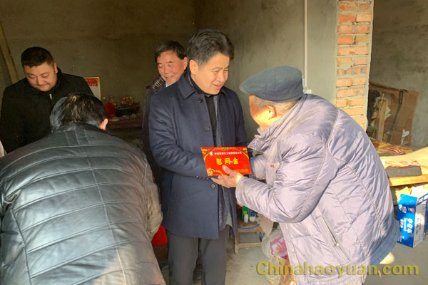 1月24日,公司黨委書記、董事長凡殿才在黨委副書記、副總經(jīng)理楊捷、工會副主席戚偉陪同下,到界首市新馬集鎮(zhèn)老王寨村扶貧慰問。