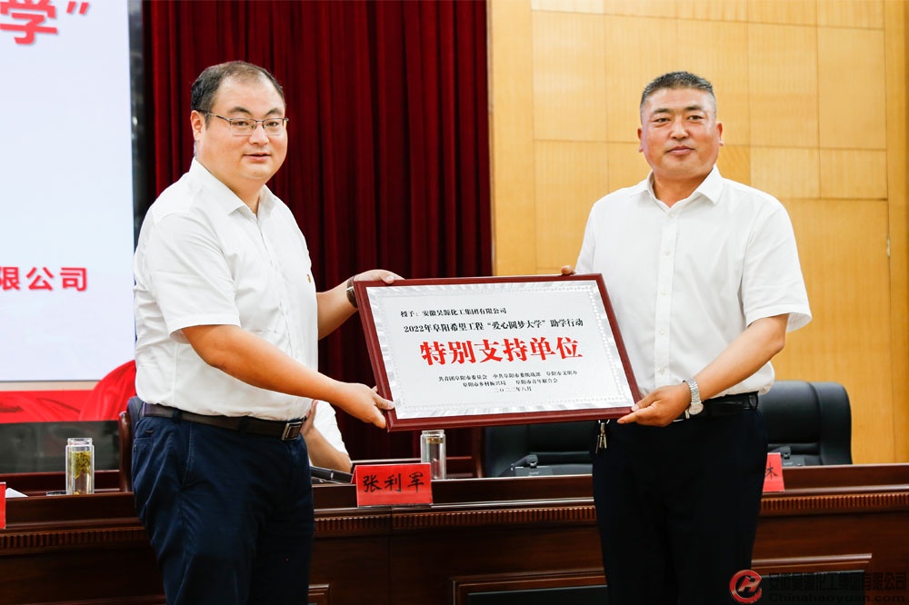 8月20日,潁東區(qū)希望工程2022年“愛心圓夢大學(xué)”助學(xué)金發(fā)放儀式在潁東區(qū)政府會議室舉行。團市委書記汝磊、潁東區(qū)委副書記楊世強、安徽昊源化工集團有限公司常務(wù)副總經(jīng)理高明林出席活動。