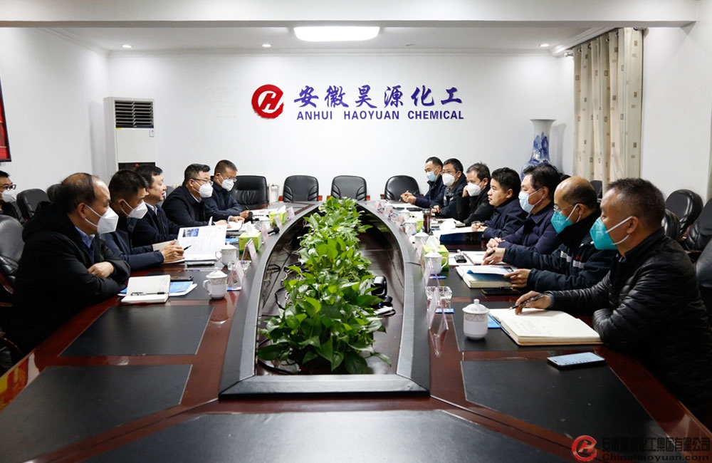在昊源老廠區(qū)會(huì)議室,凡殿才向申瑞屏一行匯報(bào)了公司生產(chǎn)經(jīng)營(yíng)、產(chǎn)品產(chǎn)能及發(fā)展規(guī)劃情況。昊源公司積極貫徹新發(fā)展理念,以數(shù)字化、信息化、智能化創(chuàng)新經(jīng)營(yíng)與管理模式,統(tǒng)籌推進(jìn)企業(yè)綠色低碳高質(zhì)量轉(zhuǎn)型發(fā)展。園區(qū)一期、二期全部項(xiàng)目、三期部分項(xiàng)目已建成運(yùn)行,實(shí)現(xiàn)達(dá)產(chǎn)達(dá)標(biāo)。三期在建項(xiàng)目將于2023年10月全部建成投運(yùn),四期項(xiàng)目也在有序推進(jìn)中。按照穩(wěn)肥擴(kuò)化發(fā)展戰(zhàn)略,四期項(xiàng)目全部建成投運(yùn)后,將進(jìn)一步延伸和優(yōu)化升級(jí)產(chǎn)品鏈,提升盈利能力,向高新技術(shù)、高附加值的化工新材料、高端化學(xué)品、精細(xì)化工品方向發(fā)展,提高公司市場(chǎng)競(jìng)爭(zhēng)力。