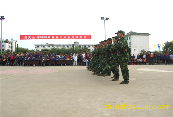 經(jīng)過一個(gè)月的軍訓(xùn), 4月30日,公司舉行了全員軍訓(xùn)會(huì)操大會(huì)。此次軍訓(xùn)使職工隊(duì)伍更加整齊,訓(xùn)練更加有素,作風(fēng)更加優(yōu)良。充分體現(xiàn)了和昊源合作后,職工飽滿的工作熱情。將有力促進(jìn)企業(yè)快速健康發(fā)展。 (新天公司工會(huì))