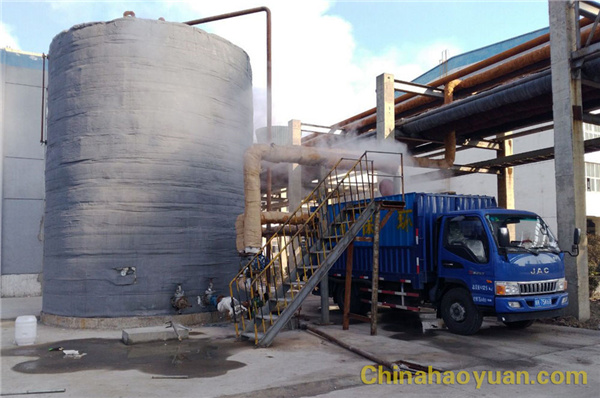 熱水生產(chǎn)系統(tǒng)是公司新增項目,它利用公司廢蒸汽余溫加熱深井水,從而生產(chǎn)出昊源熱水。昊源熱水每噸可以銷售18元,廣泛用于賓館和浴池。此項目不僅為公司增加效益,還保護(hù)了環(huán)境。