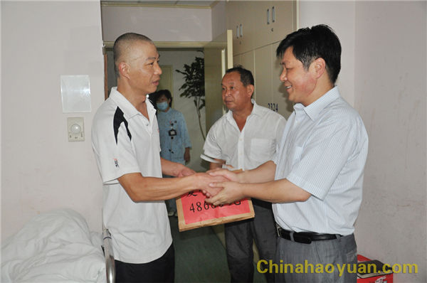 8月17日,公司副總經(jīng)理高玉磊攜工會副主席滑海東、李文平一行,帶著公司和全體員工的重托與祝愿,攜著沉甸甸的愛,不遠(yuǎn)千里趕赴上海腫瘤醫(yī)院,及時的將愛心捐款送到翟金良的手中。