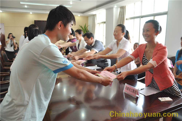 8月29日,市直團(tuán)委“愛心圓滿大學(xué)”助學(xué)金發(fā)放儀式在市團(tuán)委舉行。 圖為,昊源集團(tuán)團(tuán)委書記馮婷婷為昊源學(xué)子發(fā)放助學(xué)金。